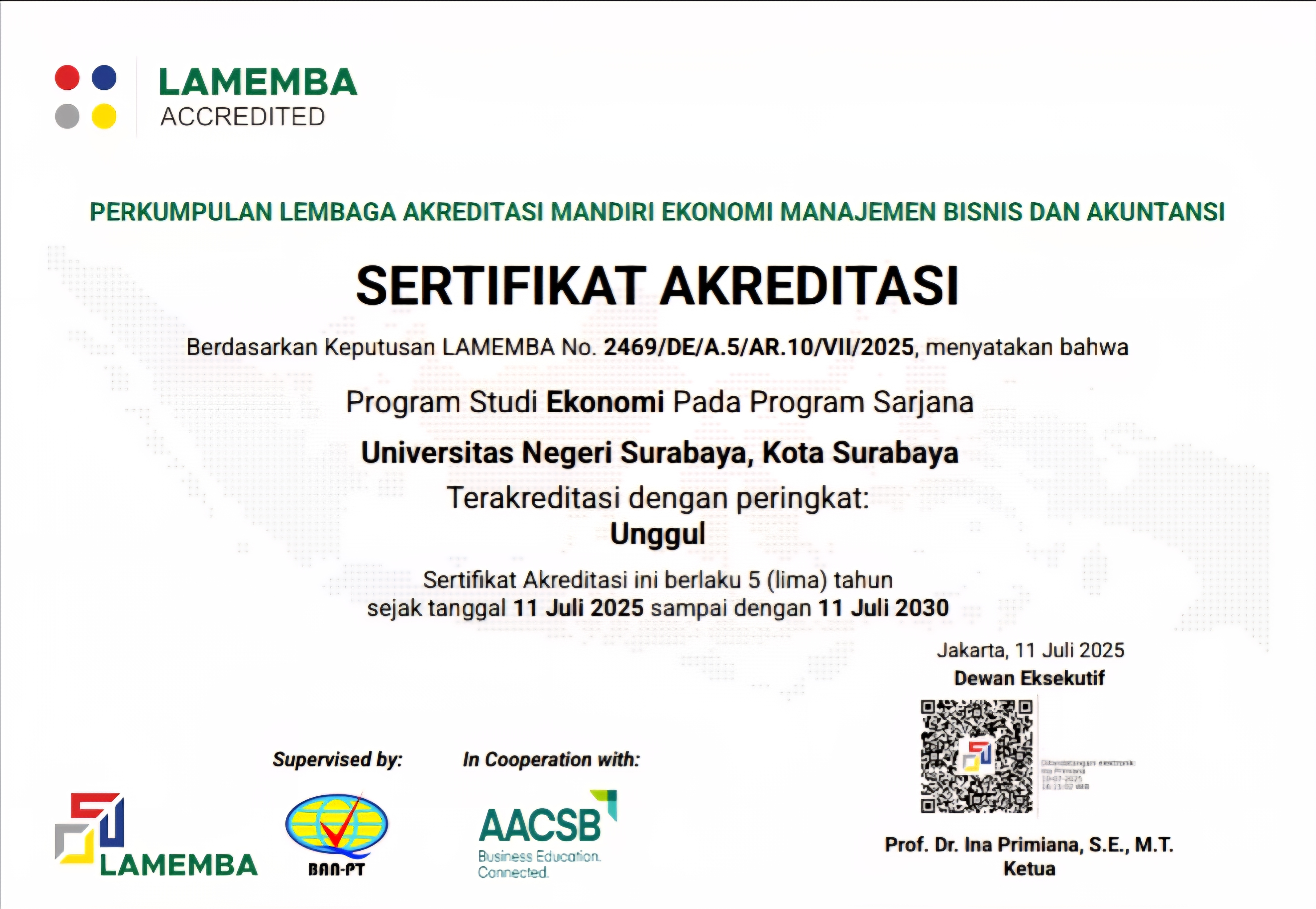 UNESA S1 Economics Study Program Achieves Superior Accreditation from Lamemba, Proof of Maintained Quality